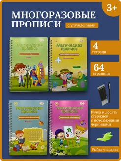 Прописи многоразовые, с углублениями, для дошкольников 4 шт
