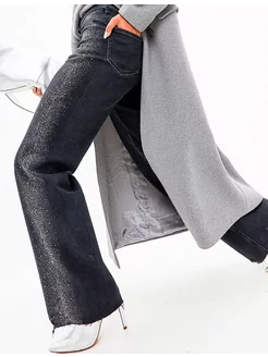 Джинсы широкие с высокой посадкой стразами