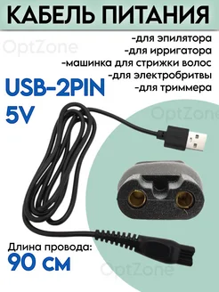 Кабель переходник USB - 2PIN, 5V для электробритв, триммеров