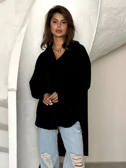 Рубашка оверсайз удлиненная школьная черная для подростка