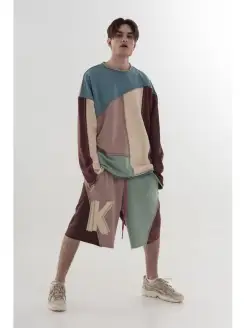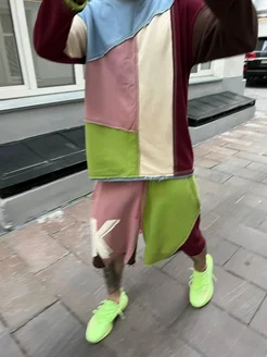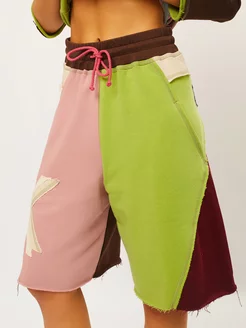 Шорты дизайнерские разноцветные оверсайз в стиле пэчворк