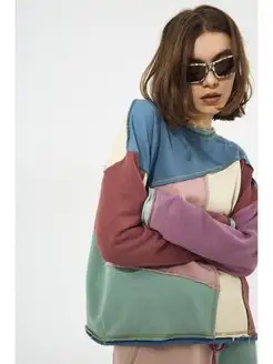 Лонгслив свитшот разноцветный в стиле пэчворк оверсайз