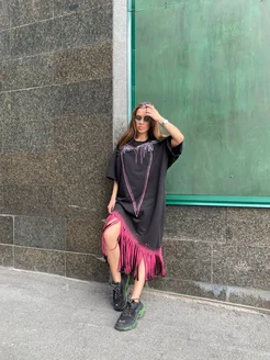 Лонгслив разноцветный в стиле пэчворк оверсайз