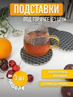 Подставки для кухни EVA-материал круг 3шт соты сер 12см