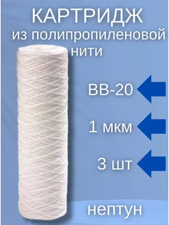 Картридж из полипропиленовой нити Нептун PS-20BB 1мкм 3 шт
