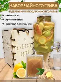 Чайный гриб. Подарочный набор в деревянной коробке