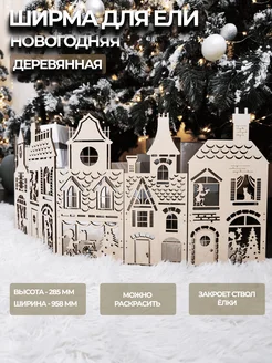 Ширма из домиков деревянная для елки