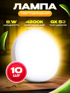 Светодиодные лампочки GX53 8Вт 4000К Белый свет 10 шт