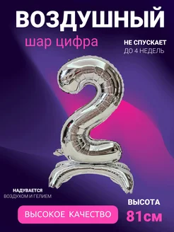 Фольгированный шар "Цифра 2" на подставке, серебро