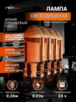 LED лампы светодиодные W5W T10 оранжевые для грузовых авто