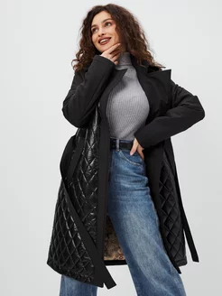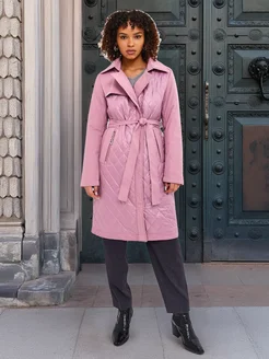 Пальто демисезонное стеганое с поясом без капюшона