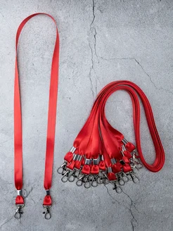 Ленты для бейджа с двумя карабинами, 15 мм красные, 25 штук