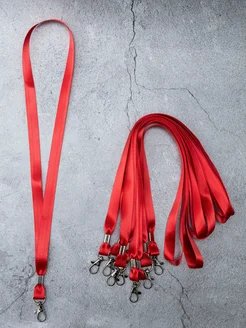 Лента для бейджа с карабином, красная 15 мм - 10 шт