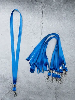 Лента для бейджа с карабином, синяя 15 мм - 10 шт