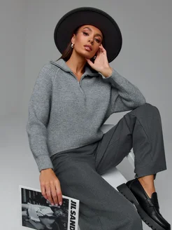 Свитер поло с горлом на молнии укороченный теплый вязаный