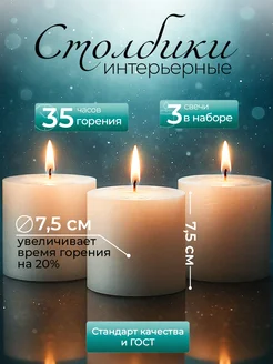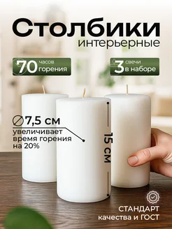 Интерьерные свечи столбики набор 3 штуки 15 х 7,5 СМ