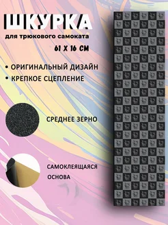 Шкурка для трюкового самоката Kitty клетка Черно-серая 2.0