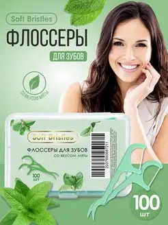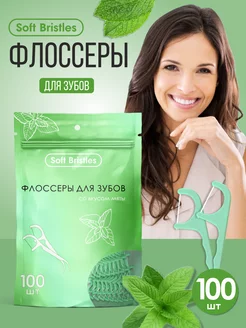 Зубная нить с зубочисткой 2в1 флоссеры 100 шт, мята
