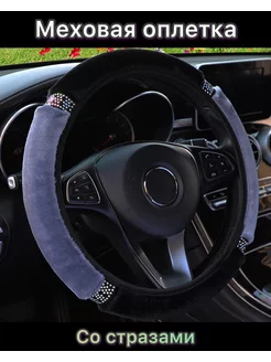 меховой теплый чехол на руль со стразами