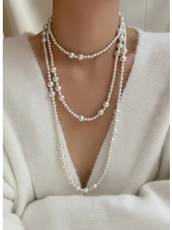 Колье жемчужное 3 в 1 многослойное, разные формы жемчуга