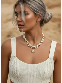 Ожерелье с мини ракушками и подвеской в виде солнца