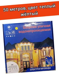 гирлянда уличная бахрома 50 метров желтая Электрогирлянда
