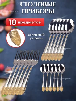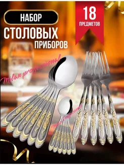 Набор столовых приборов ложек и вилок 18шт