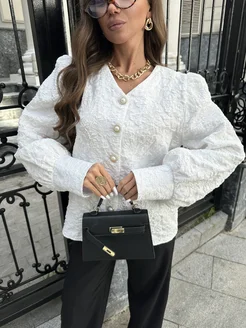 Блузка нарядная белая офисная с длинным рукавом жаккард