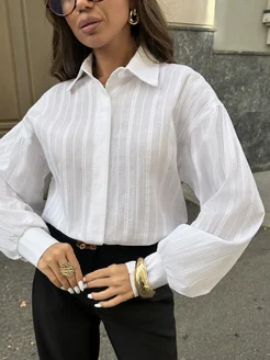 Блузка нарядная белая офисная с длинным рукавом хлопок