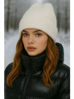 шапка зимняя ангора двойная вязка