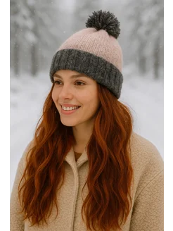 шапка зимняя с помпоном на подкладке