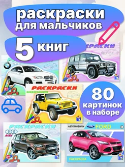 Раскраски для мальчиков 5 шт набор спорткары внедорожники
