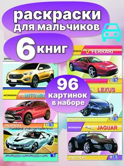 Раскраски для мальчиков 6 шт набор легковые авто суперкары
