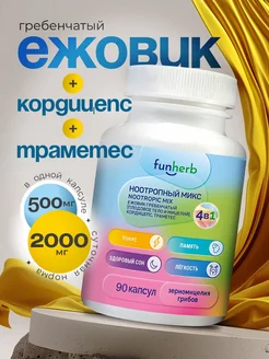 Ежовик гребенчатый, кордицепс, траметес 180 капсул по 500 мг