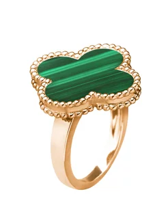 Золотое кольцо Клевер с натуральным малахитом