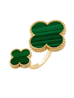 Двойное золотое кольцо Клевер с малахитом