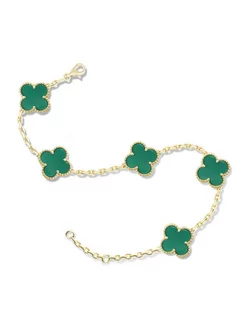 Золотой браслет Клевер с натуральными зелеными агатами