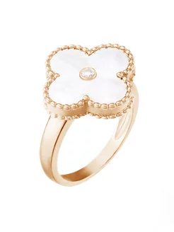 Золотое кольцо Клевер с перламутром и муассанитом