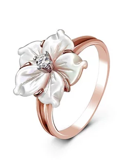 Золотое кольцо с натуральным перламутром и бриллиантами