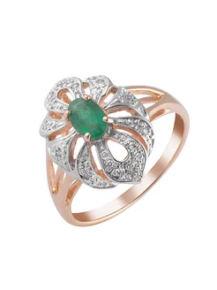 Золотое кольцо с бриллиантами и натуральным изумрудом