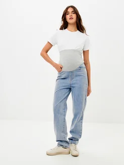 Джинсы для беременных МОМ, широкие, со вставкой животе