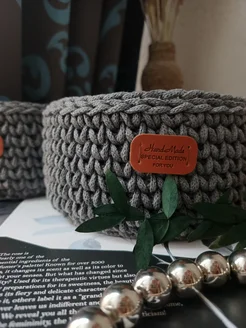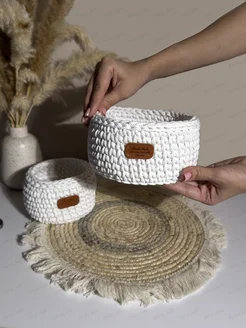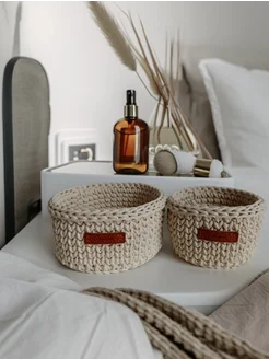 Корзинки для хранения вязаные квадратные, набор 2 шт