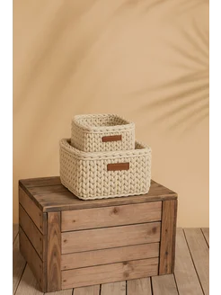 Корзины для хранения вязаные квадратные, набор 2 шт