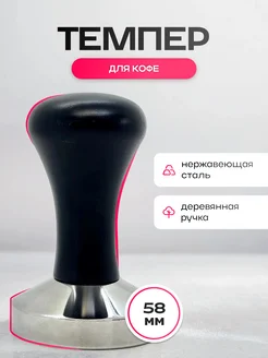 Темпер черный с деревянной ручкой 58 мм для кофе
