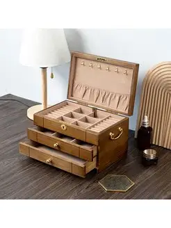 Шкатулка для украшений деревянная с замком, светлая, узоры