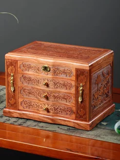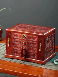 Шкатулка для украшений деревянная с замком, красная, узоры