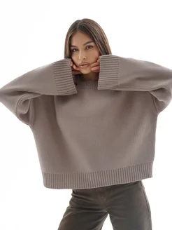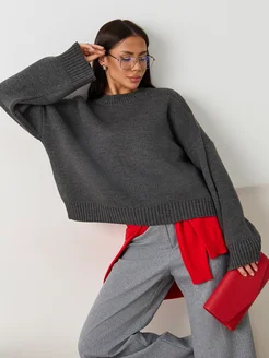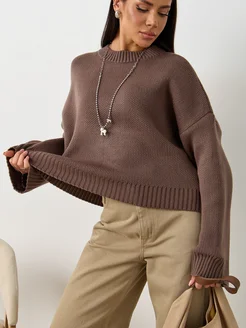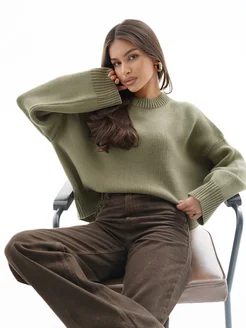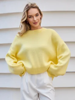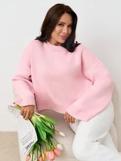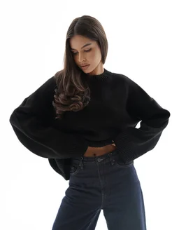 Укороченный свитер оверсайз вязаный пуловер теплый