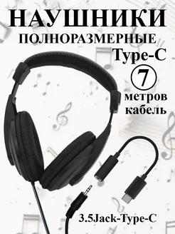 Наушники полноразмерные 7метров 3.5 Jack-Type-C