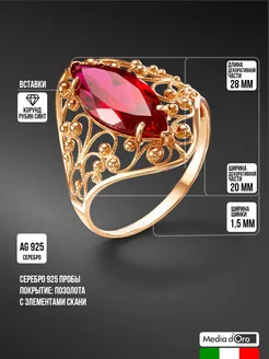 Серебряное кольцо с алмазной огранкой и сканью 925 проба