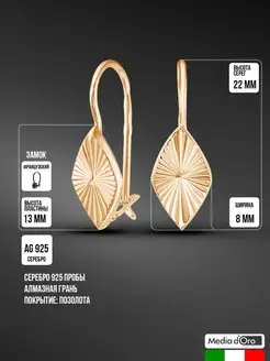 Серебряные серьги малые в форме ромба с алмазной огранкой